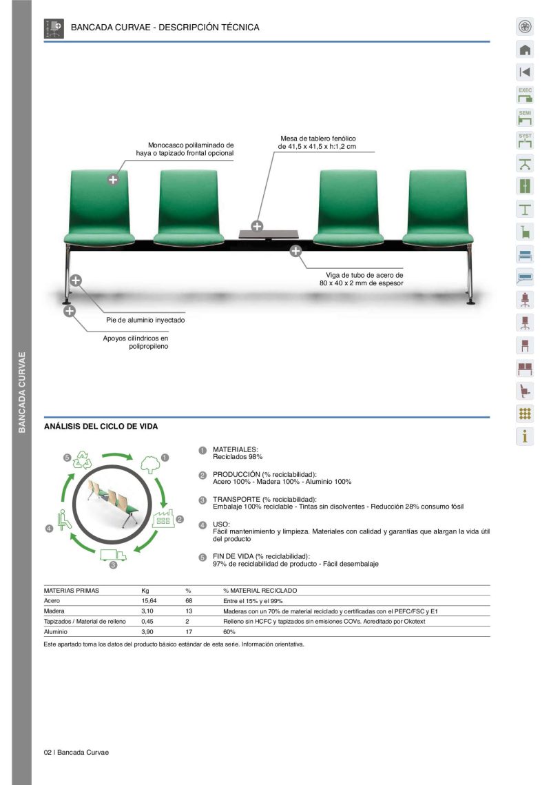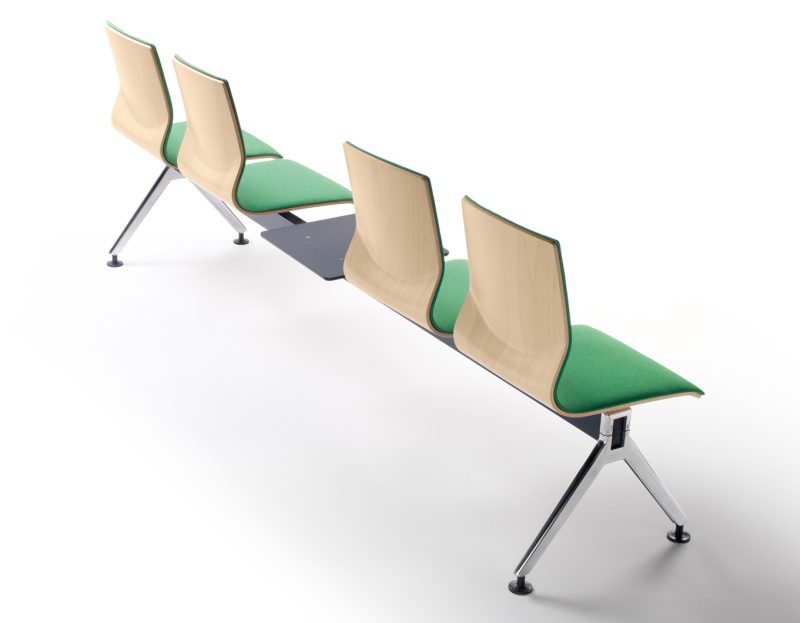 Polilaminado de haya rechapada de 10 mm de espesor. Formas orgánicas que se adaptan a la espalda del usuario.