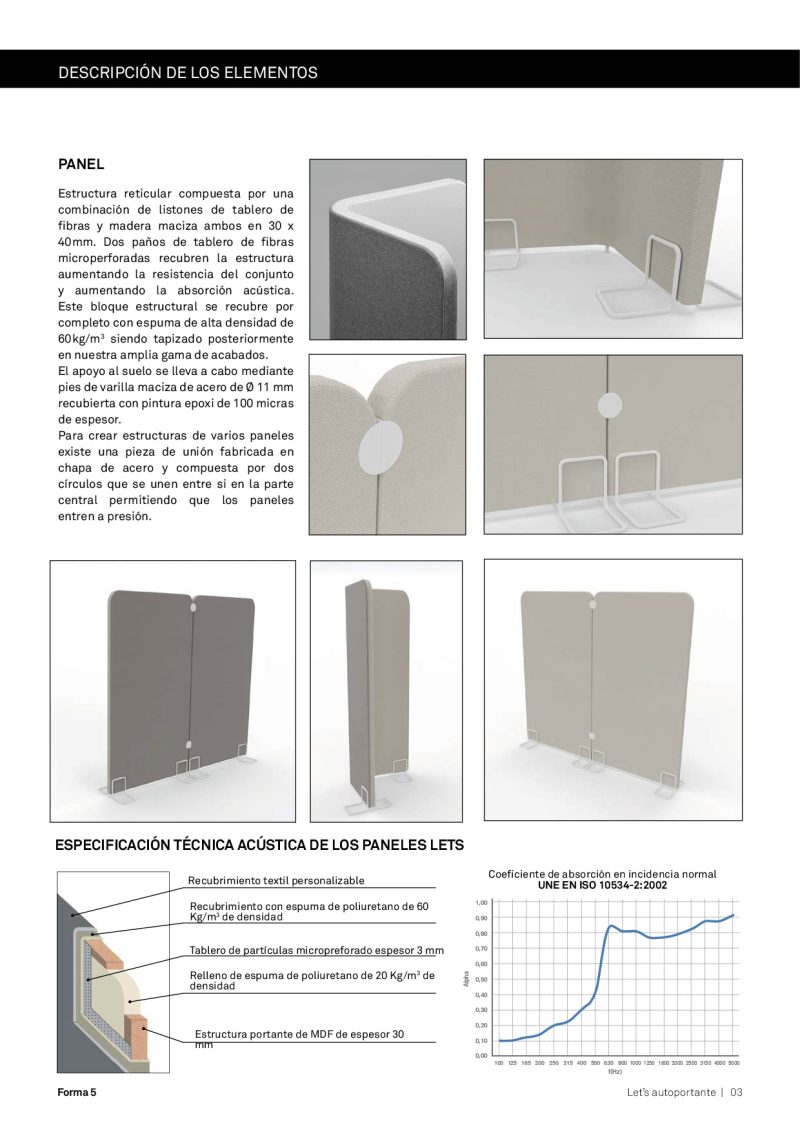 y madera maciza ambos en 30 x 40mm. Dos paños de tablero de fibras microperforadas
