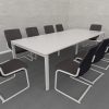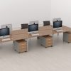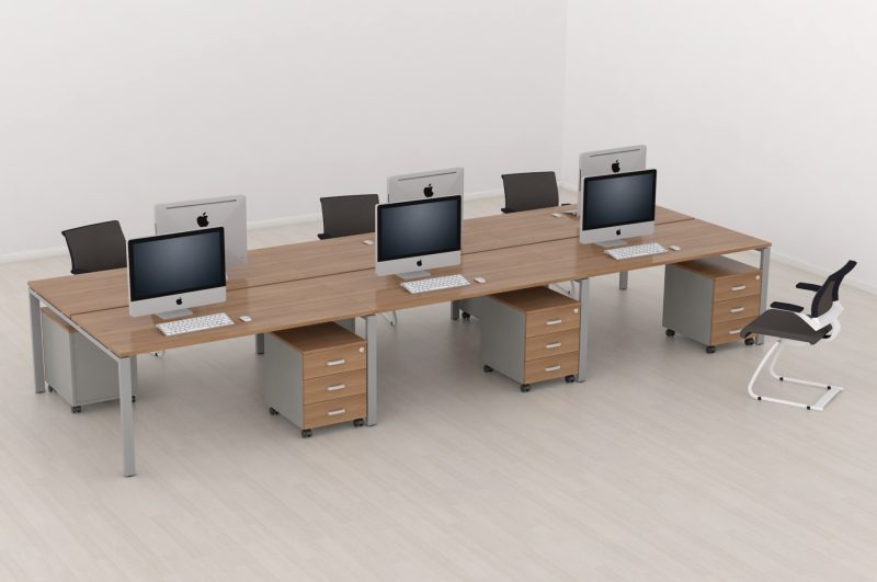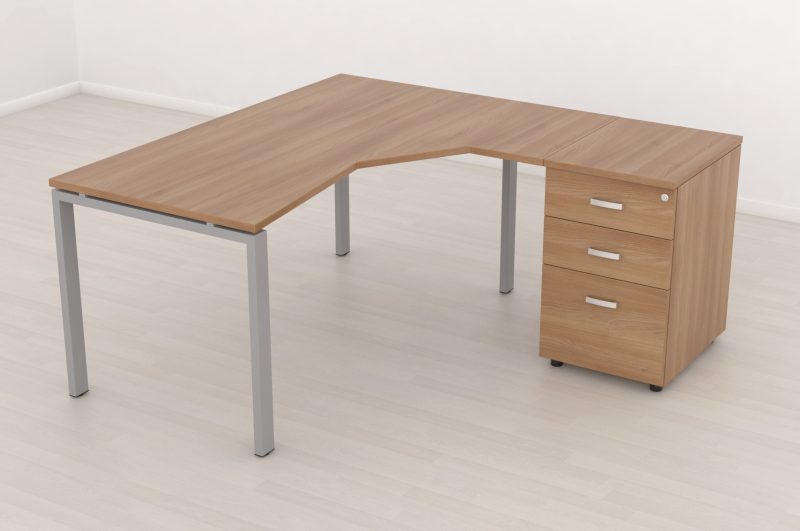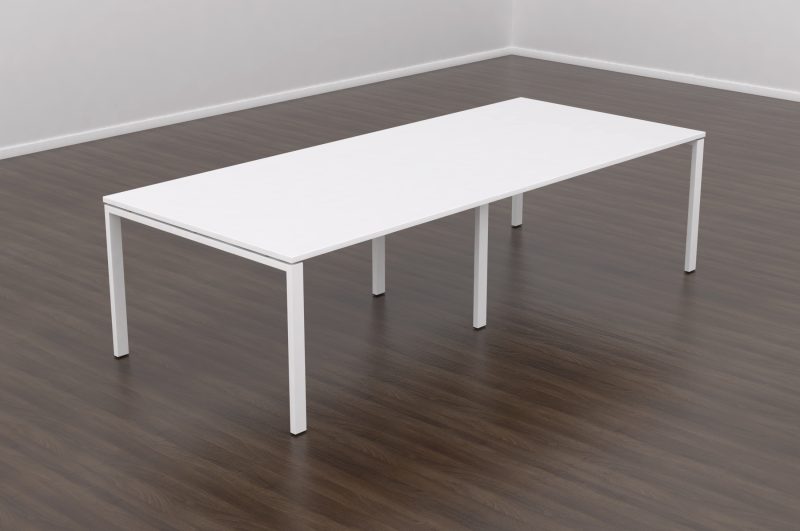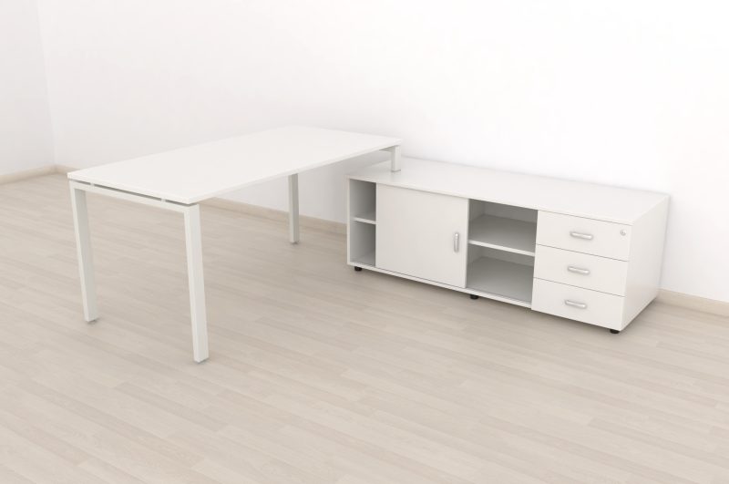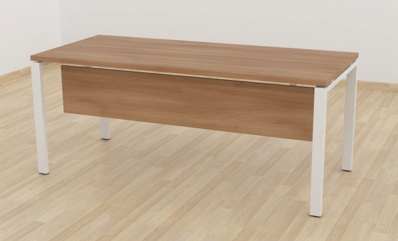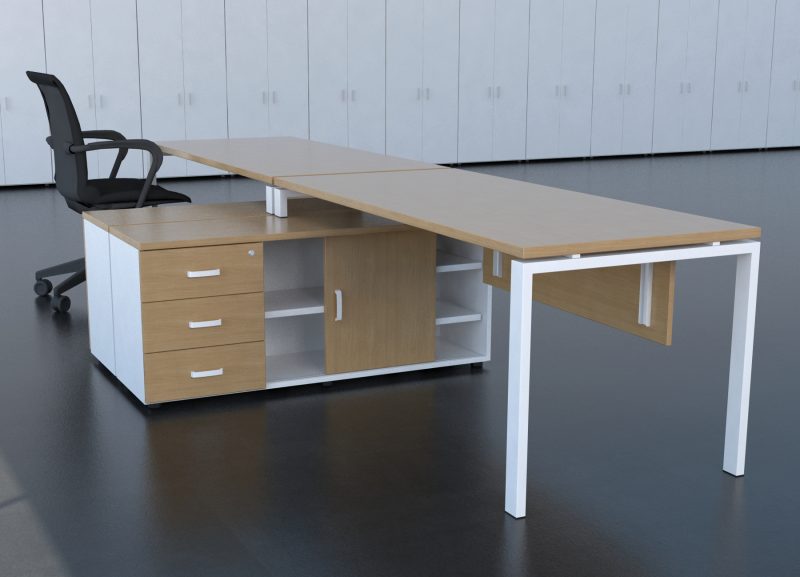 Tableros en melamina de 25mm. Patas en acero de 60x30x2mm con taco antideslizante y regulador de altura,unidas entre si por dos bastidores de chapa plegada. Mesas de 1 a 2 ms con anchos de 60 ú 80 cm. Opción a mesas compactas,de arco,extensibles,sujección a módulos. Alas, cajoneras y armarios a juego. Faldón y electrificación opcional.