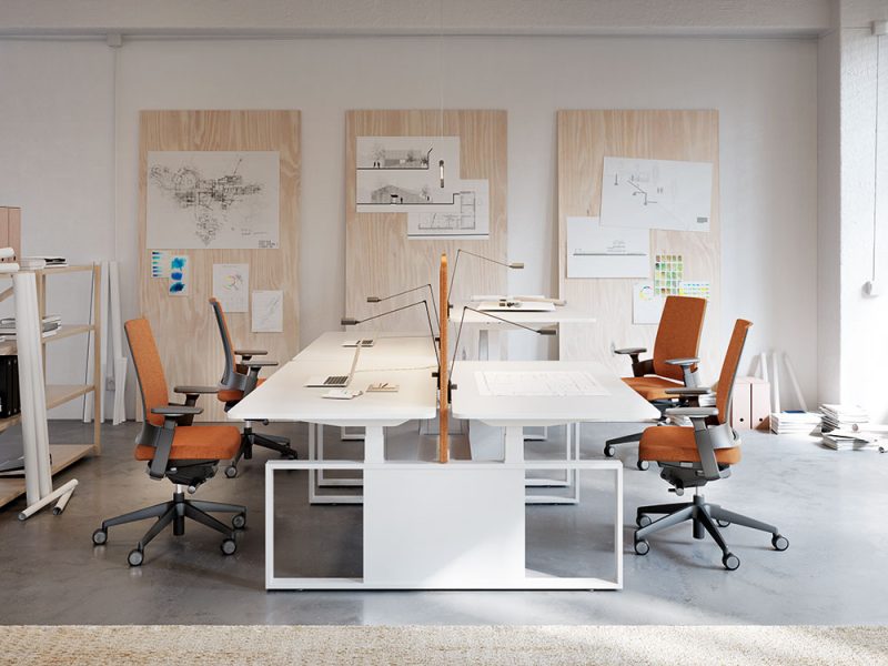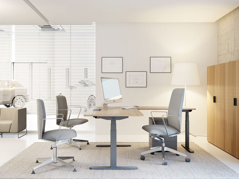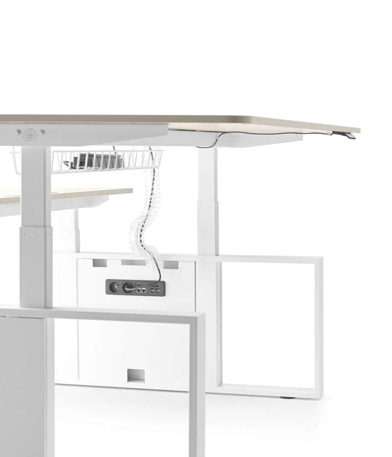Las distintas configuraciones del programa Skala permiten regular la altura de la superficie de la mesa eléctricamente, oscilando esta entre 65 y 125 cm a elección del usuario. Esta regulación es posible gracias al sistema de electrificación ubicado en el interior d e las columnas que se acciona a través de tres dispositivos: