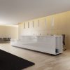 alineada con la tapa de mostrador. Canto termofusionado por todo su perímetro. El lateral sirve de soporte a un módulo de almacenaje anexo