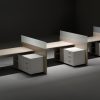 Tapa de mesa bilaminada de 19 mm de espesor con canto termofusionado de 2 mm de espesor. Bandeja electrificable