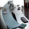 al puesto de trabajo que combina en un único módulo buc, estantería y hueco para porta CPU parcialmente cubiertos por una puerta corredera.
