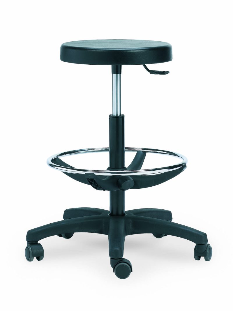 hércules 3: Taburete asiento poliuretano inyectado, elevación neumática, sin brazos, base de poliamida, regulación de altura de asiento