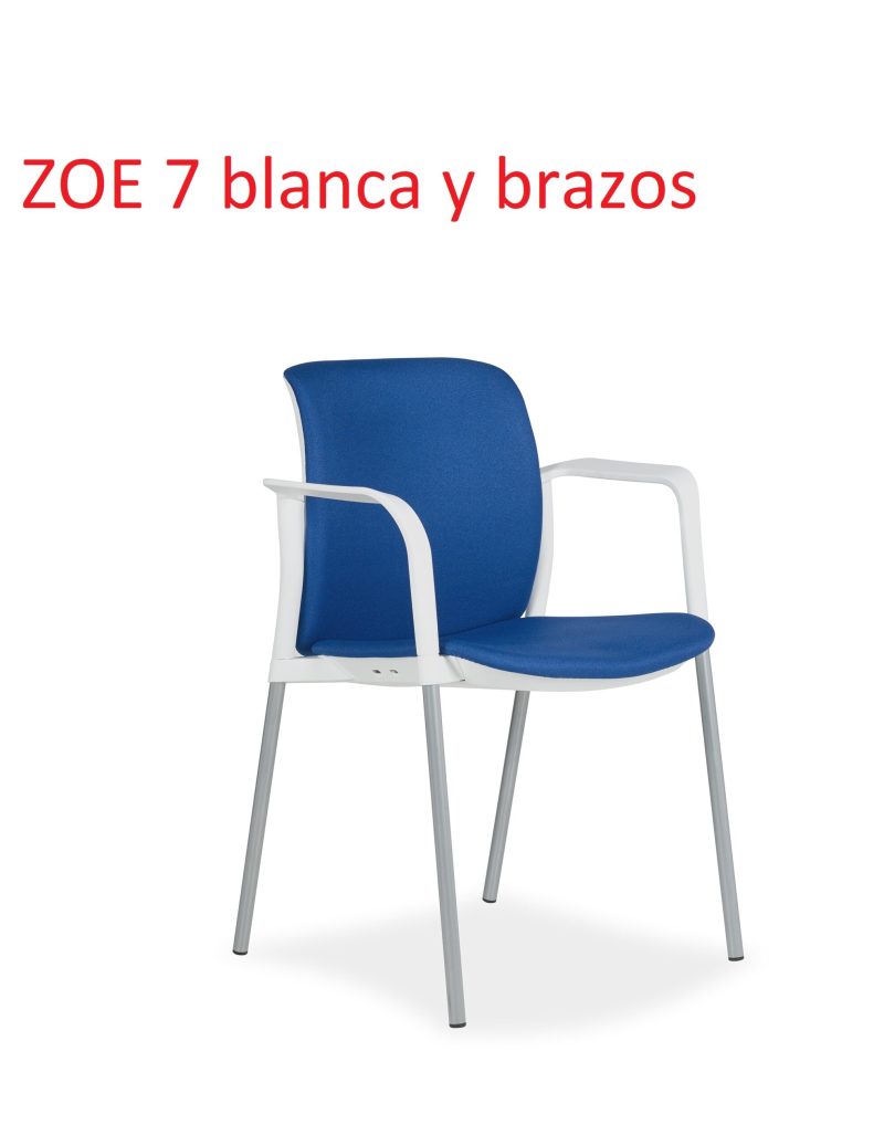 .zoe 7: Respaldo bajo, pvc blanco, estructura de 4 patas pintado en color negro, sin brazos.
