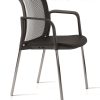 zoe 8: Respaldo bajo de malla con soporte negro, pvc negro, estructura de 4 patas pintado en color negro, sin brazos.