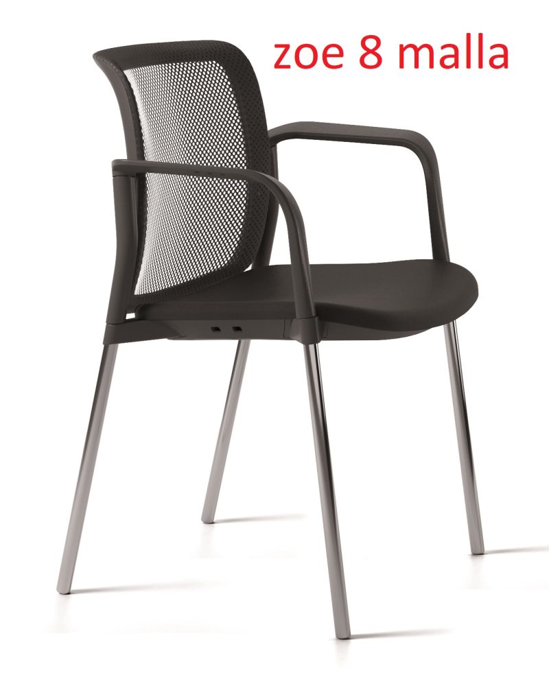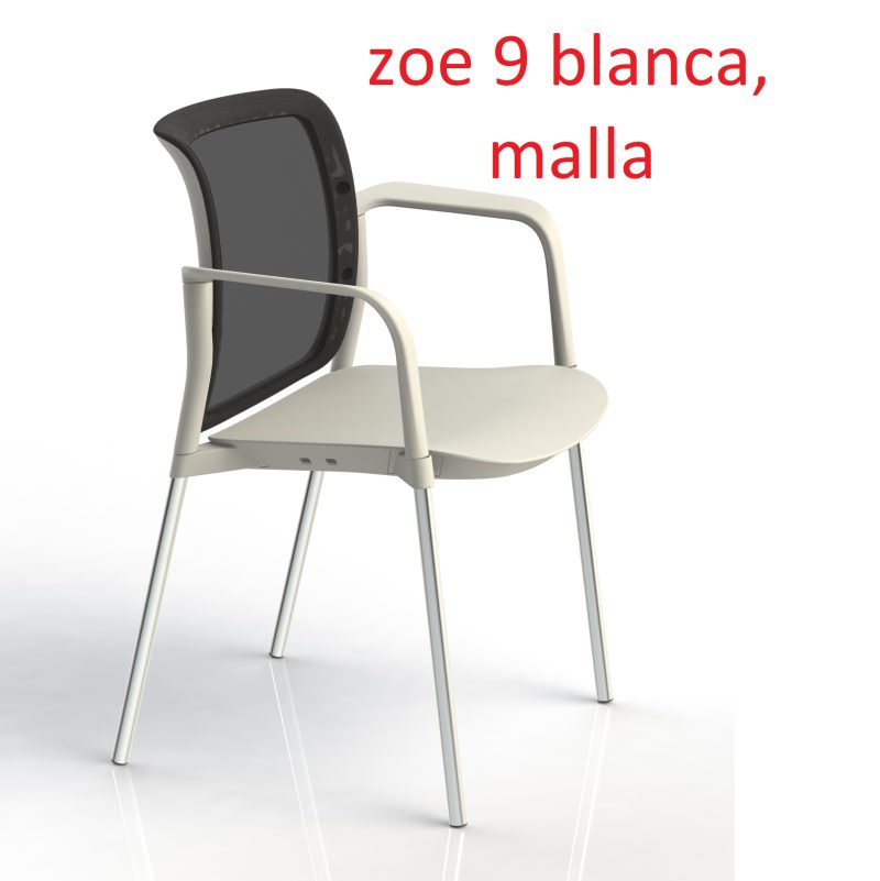 zoe 8 y 9 Asiento en espuma de 30kg/m3. Respaldo de malla en color negro, gris, azul, rojo o blanco. PVC negro o blanco. Estructura en tubo de acero redondo de 22x1.5mm.