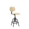 teknos 2: Elevación por husillo (girando derecha/izquierda), banqueta fija cuatro patas, asiento y respaldo en madera de haya.