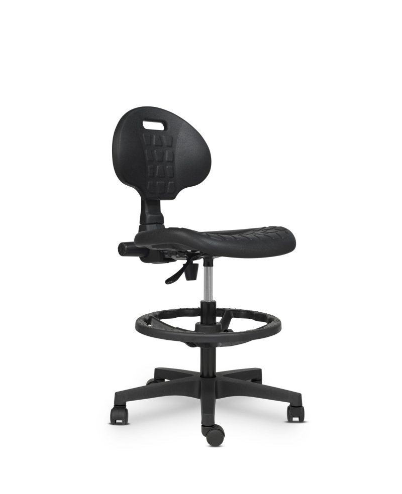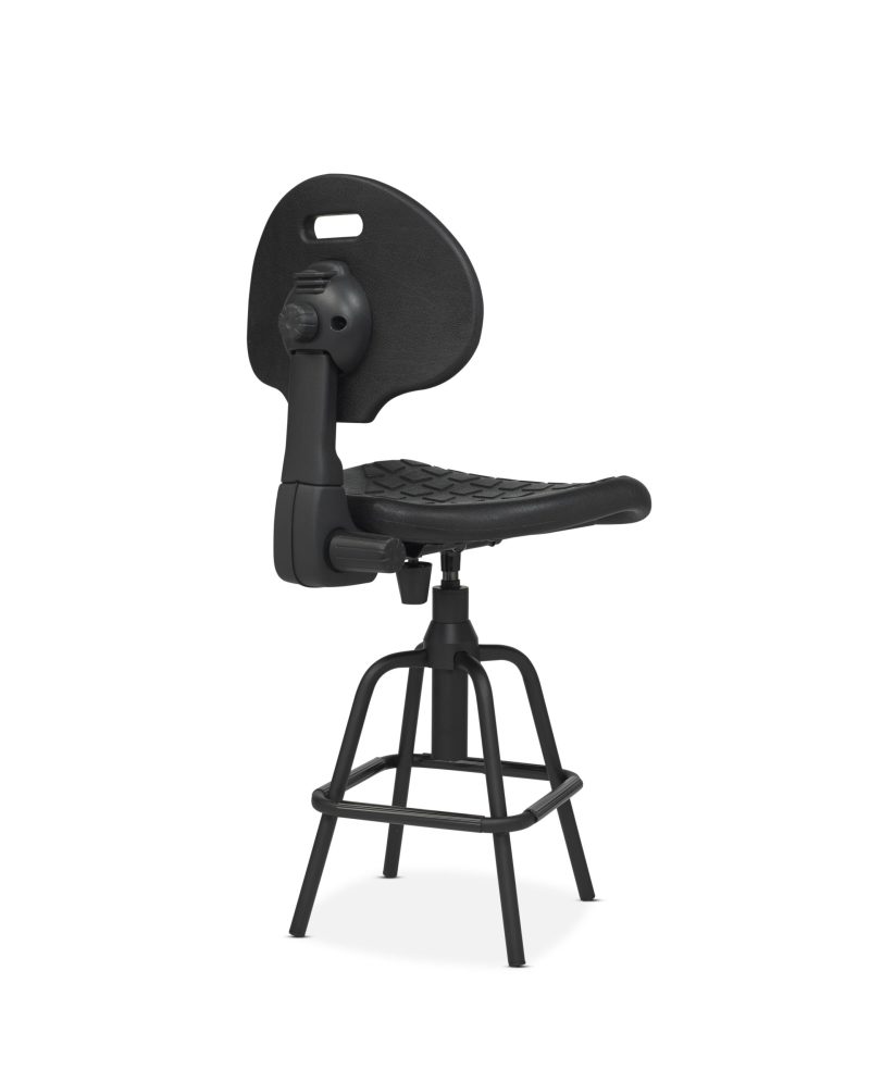 Asiento y respaldo de poliuretano integral color negro, o en madera color haya. Mecanismo de contacto permanente, con aro reposapiés de poliamida regulable en altura (Teknos 4 y 6), o estructura fija con regulación por husillo (Teknos 2, 3 y 7).
